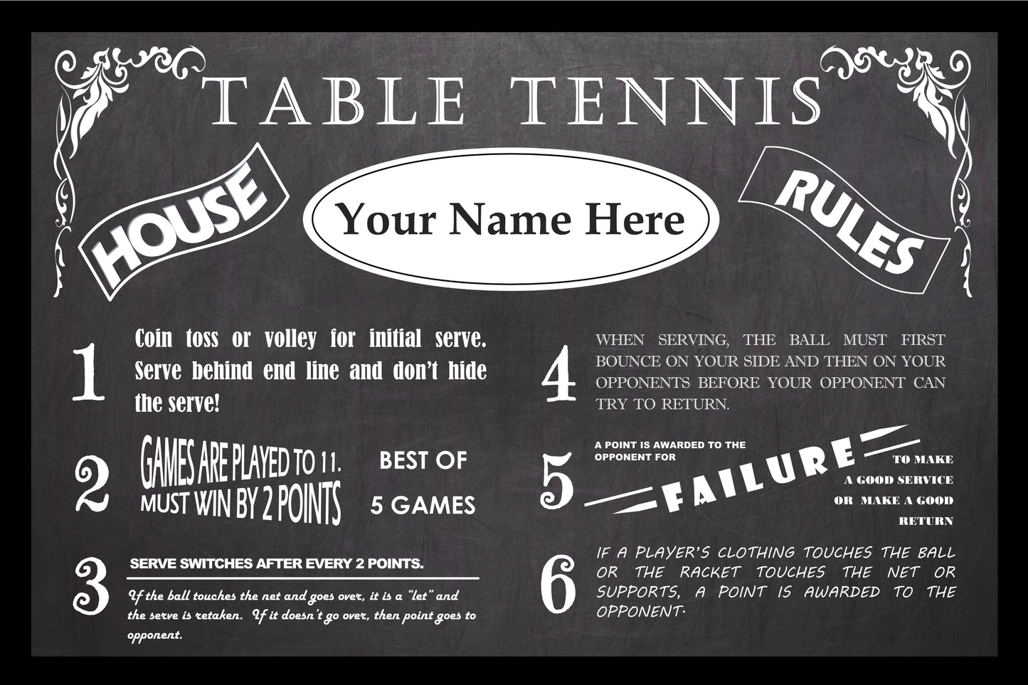 Personalized Vintage Chalkboard Looking Table Tennis Ping Pong House Rules Poster - Personalized With Your Name!
